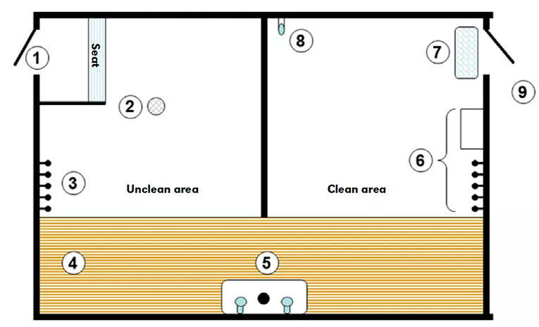 23. При можливості встановити параформалінову камеру для дезінфекції одягу та супутнього інвентарю. Також стане в пригоді утилізатор для знешкодження побічних продуктів тваринного походження.