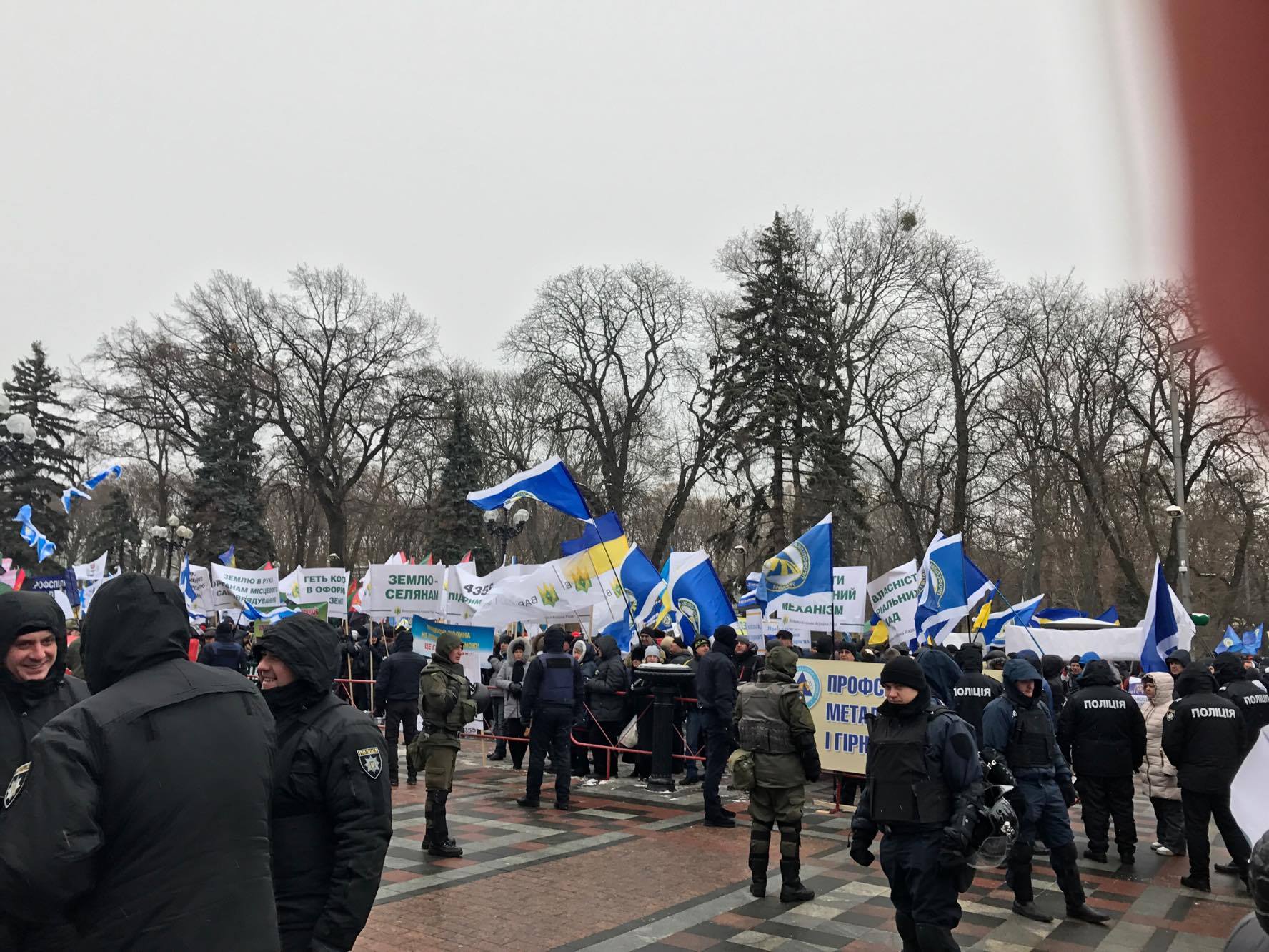 10.00-11.00 почався мітинг за підтримку законопроекту, що передбачає передачу державних земель за межами населених пунктів у власність територіальним громадам, а також передачу сільським, селищним та міським радам повноважень з розпорядження такими землями.