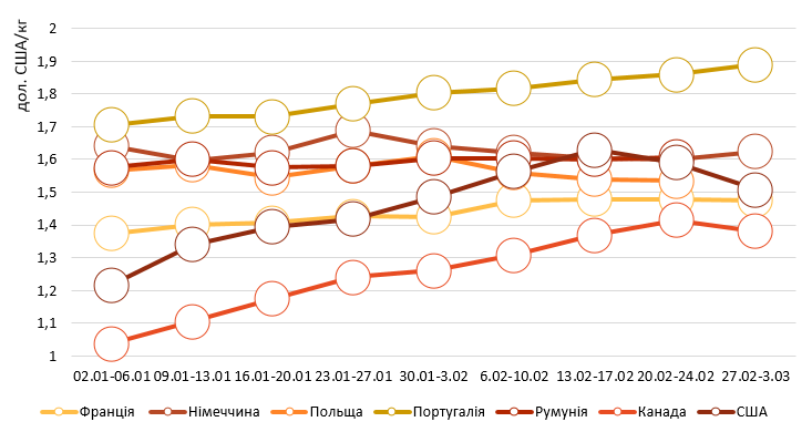 Зокрема ціни на ринку свинини у більшості країн ЄС характеризувалися незначною волатильністю впродовж лютого. Хоча на початку місяця обмеженість пропозиції свиней забійних кондицій через холодні погодні умови спричинила підйом цін, проте для більшості країн співдружності ця подія мала ситуативний характер. Зберегти висхідну динаміку вдалося лише у Південній Європі — у Франції, Іспанії та Португалії. У решті країн до кінця лютого спостерігалася стабілізація цін.