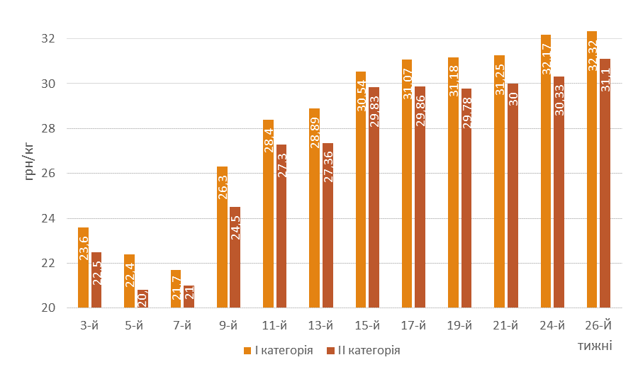 Динаміка цін на свиней у живій вазі (26-й тиждень)