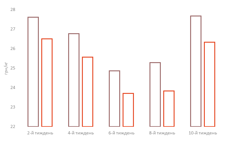 Тим не менш, більшість гравців ринку очікують на продовження позитивної динаміки закупівельних цін у подальші пару тижнів. Дехто навіть анонсує підйом цін до рівня 30 грн/кг, проте більш скептична позиція також існує, згідно з якою очікують відносної стабільності цін у найближчій перспективі. Підтримкою цін слугує як покращення погодних умов та очікування активнішого попиту у зв’язку із цим, а також інформація про «відтік» свинини неофіційними каналами.