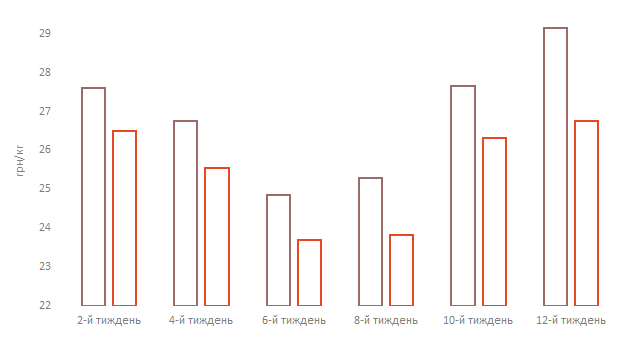 Динаміка цін на свиней у живій вазі (тиждень 12)