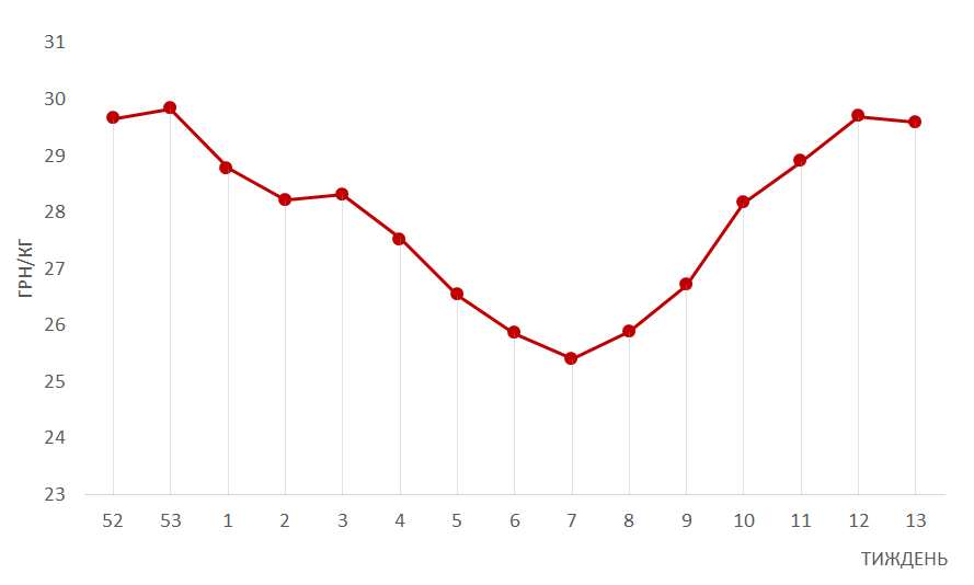 Протягом останніх днів березня українські свинарі відчували посилений тиск з боку переробників, який переріс у серйозне протистояння у дні торгів. Апелюючи низькою платоспроможністю населення як причиною низького попиту та значними обсягами залишків, які «не розійшлися» досі, закупівельники добилися здешевлення живця свиней. У результаті, нижній поріг цін опустився до позначки 28,5 грн/кг. Хоча ціновий максимум залишився на рівні 30 грн/кг, небагатьом виробникам вдалося втримати таку ціну.