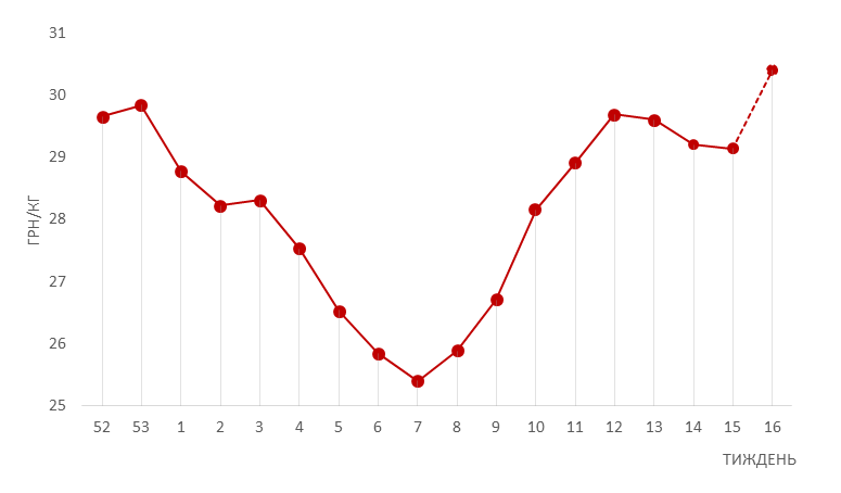 Динаміка цін на свиней у живій вазі (тиждень 16)