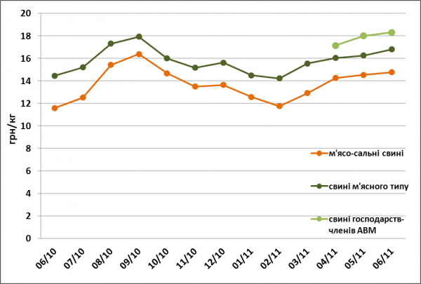 Окремої уваги заслуговує розгляд цін на свиней від господарств-членів Асоціації свинарів Україні, які постачають на переробку тварин високої якості. Ціна на таких свиней у червні сягала в середньому 18,3 грн/кг. У порівнянні з попереднім місяцем, вона зросла на 1,7% (0,3 грн/кг)