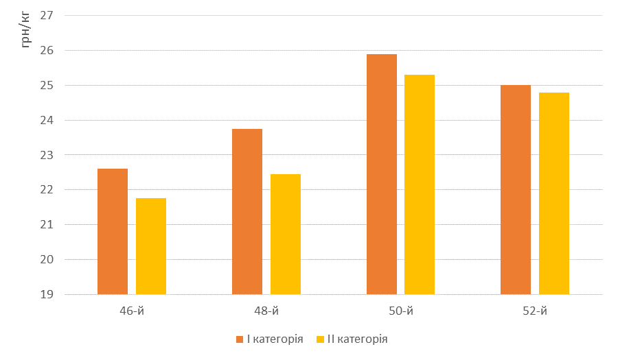 Динаміка цін на свиней у живій вазі (52-й тиждень)
