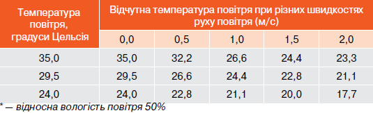 Таблиця 2. Як температура повітря залежить від швидкості його руху