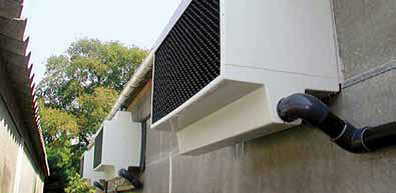 Принцип їх дії такий: повітря потрапляє до приміщення через панелі, по яких стікає вода. Перевага, порівняно з попередньою системою, — менша чутливість до якості води. Панелі легкі в обслуговуванні, їх можна комбінувати з іншими системами охолодження.
