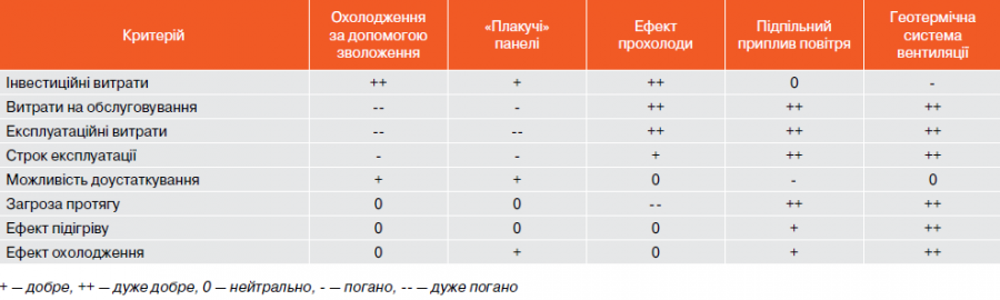 Таблиця 3. Порівняння переваг і недоліків різних систем охолодження повітря
