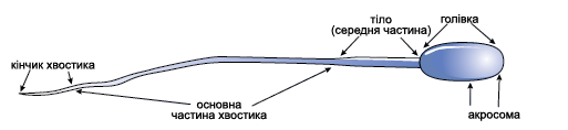 Спермій кнура складається із головки (7 μm), серединної частини (0,7 μm) та хвостика (37,1 μm).