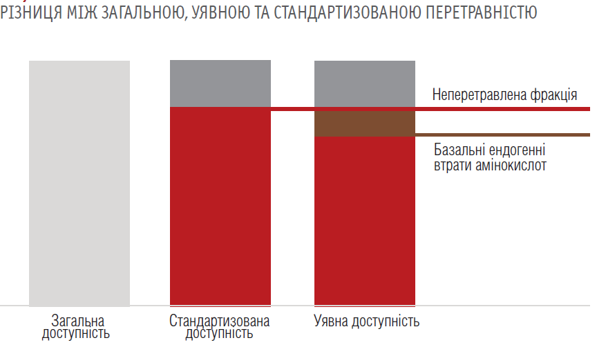 Раціони ще й досі оцінюють за умістом сирого та перетравного протеїну (тим, що виділяється з гноєм тварин), хоча ці показники нічого не говорять про його здатність задовольнити фізіологічні потреби свиней в амінокислотах. У результаті засвоюваність протеїнової складової може погіршитися більше, ніж уполовину.