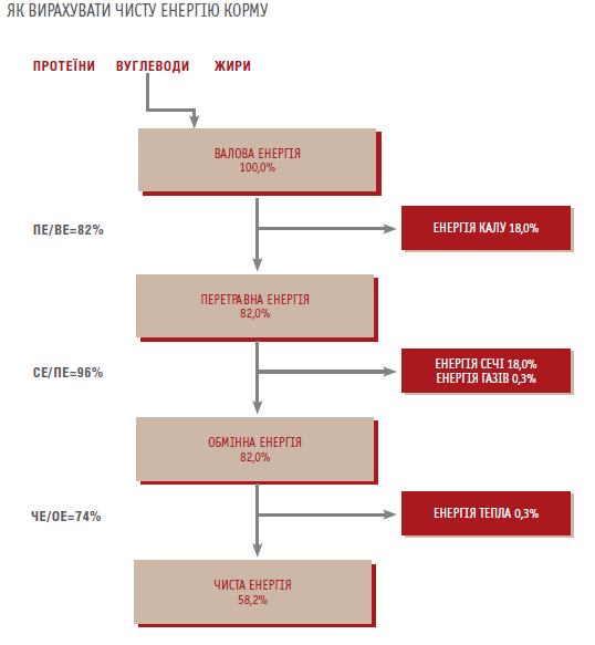 4-відсоткове зменшення частки сирого протеїну в раціоні проблематичніше. Щоб це стало можливим, добавка кристалічного лізину має становити 0,4%, валін та ізолейцин повинні бути добре збалансовані. При цьому раціон треба розробляти відповідно до системи чистої енергії. Так, високо- і низько протеїновий раціони можуть мати однакову обмінну енергію, хоча у другому випадку протеїн замінять, наприклад, крохмаль та жир. Оскільки їхня енергетична цінність вища (82% і 90% відповідно проти 58% перетравного протеїну), чиста енергія корму буде більшою.