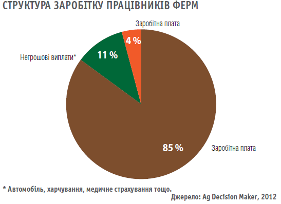 Нараховується погодинно або як фіксована сума на тиждень (місяць чи рік). 71% опитаних працівників отримували погодинну оплату. Хоча її середній розмір на рік (так само як бонуси та розмір негрошових виплат) менший, ніж фіксована ставка. При цьому працівники, які отримують виплати фіксованими частинами, як доводить дослідження, мають більший стаж роботи і довше «затримуються» на одній фермі.