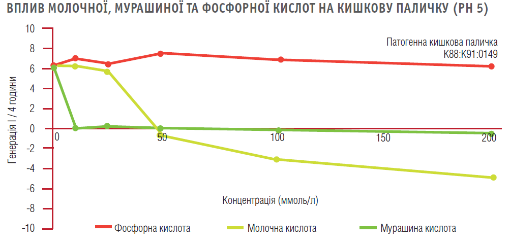 Після того, як корм з органічною кислотою (сумішшю органічних кислот) потрапляє в шлунково-кишковий тракт поросяти, його рівень рН та буферна місткість знижуються набагато швидше. Це сприяє кращому травленню, адже, наприклад, білок оптимально перетравлюється при низьких значеннях рН (2–3,5).